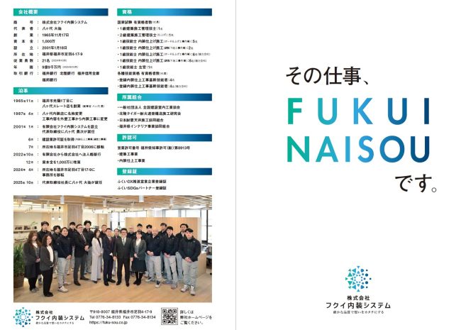 「内装工事」という仕事は、中学生には少しイメージしづらい部分もあります。そのため、実際の施工写真やパンフレットを交えながら、空間が形になっていく喜びを伝えさせていただきました。子どもたちが将来、自らの道を選んでいく際の何かしらのヒントになれば幸いです。